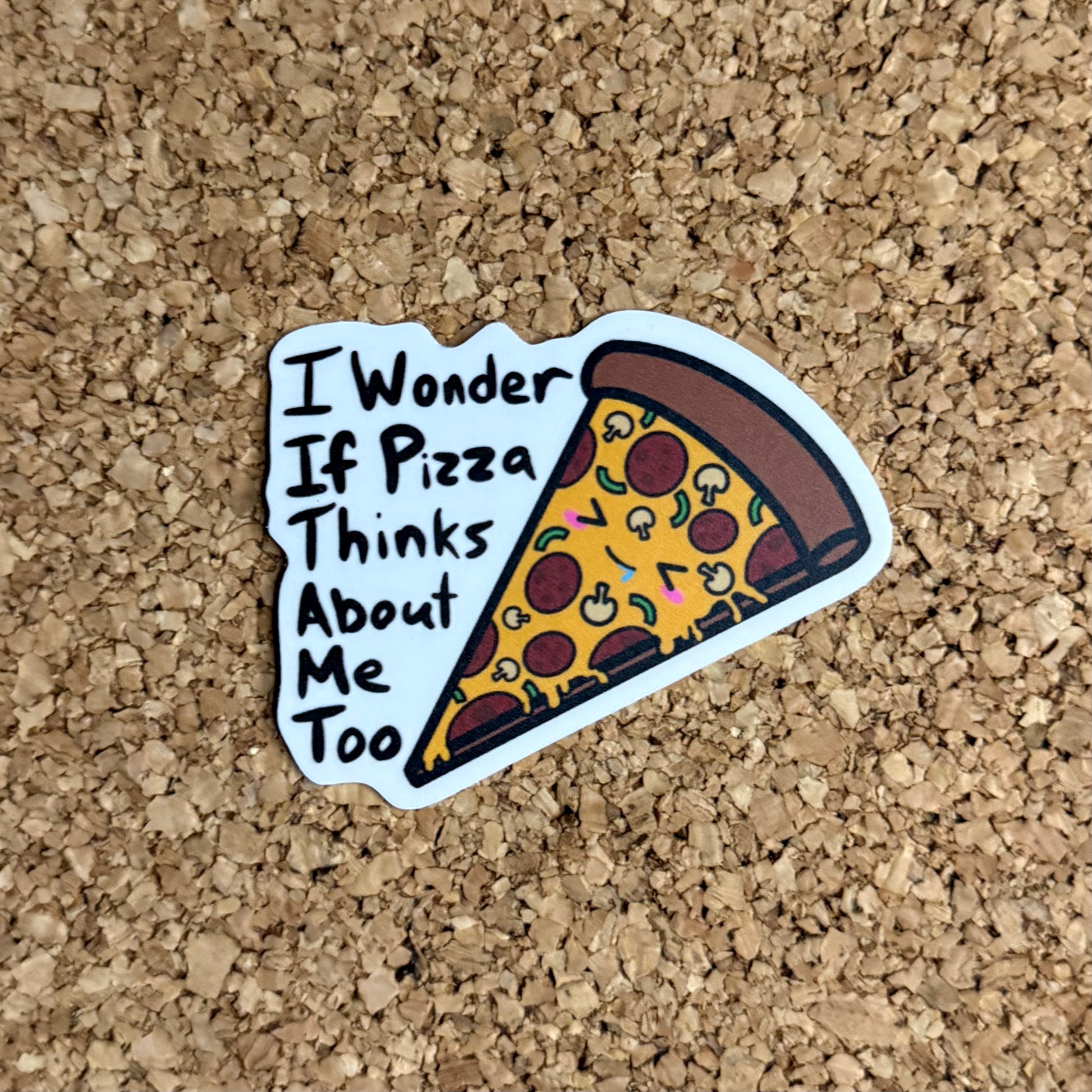 I Wonder If Pizza Thinks About Me Too Funny Kawaii Pizza Sticker